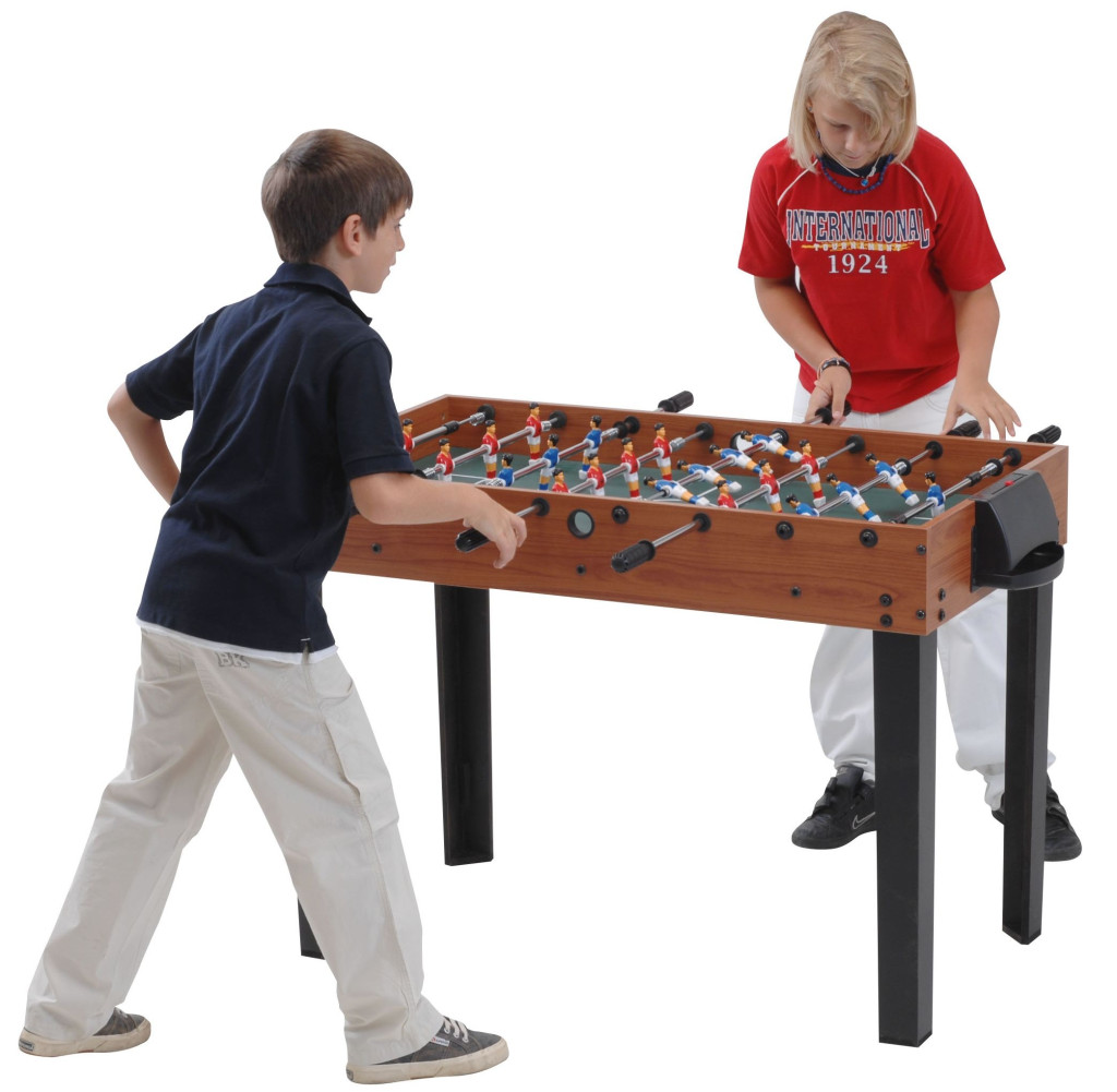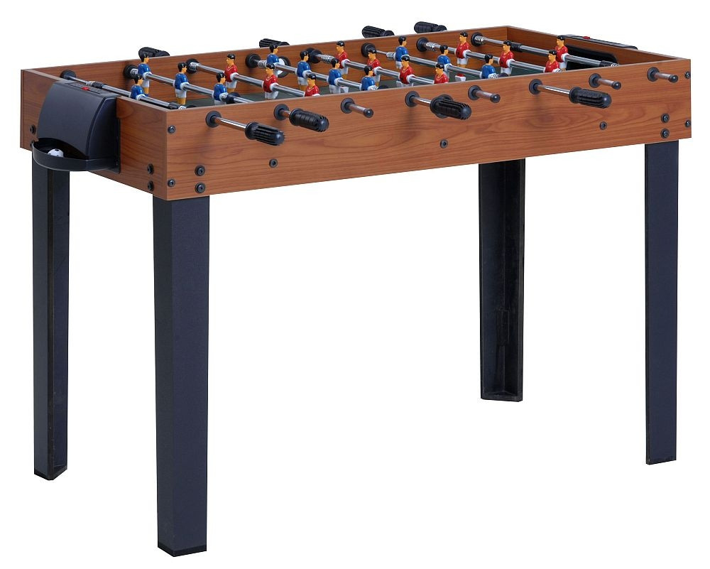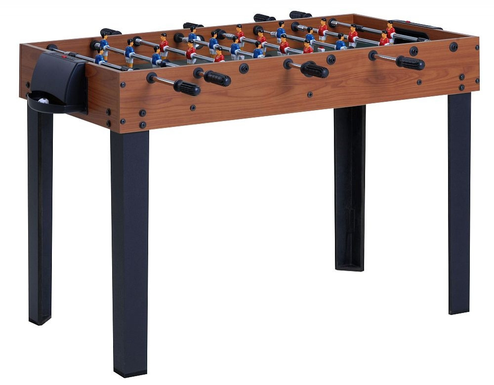 Gyermekek számára ideális választás lehet ez a csocsóasztal, mely kisebb ugyan a versenyméretű csocsóknál, de a játék így is különösen élvezetes rajta.