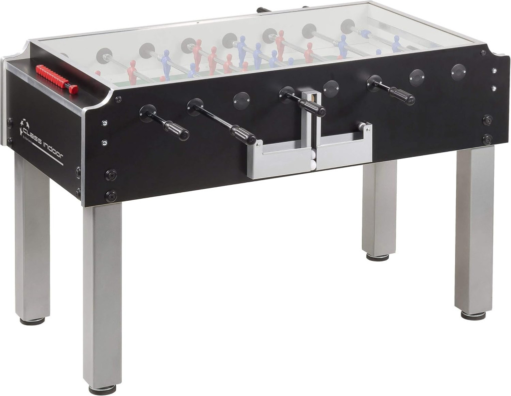 A Class Indoor csocsóasztal egy beltéri felhasználásra kifejlesztett, csocsó asztal, mely edzett üveglappal fedett. Felhasználási területén közösségi terek mellett igényes privát terekben való elhelyezésével kiváló csocsóélményt nyújt. Az edzett üveg fedõlap egyfajta biztonásérzetet nyújt, emellett a labdák elkallódásától sem kell tartani, hiszen a zárt labddavezetõ sín ebben nyújt segítséget.