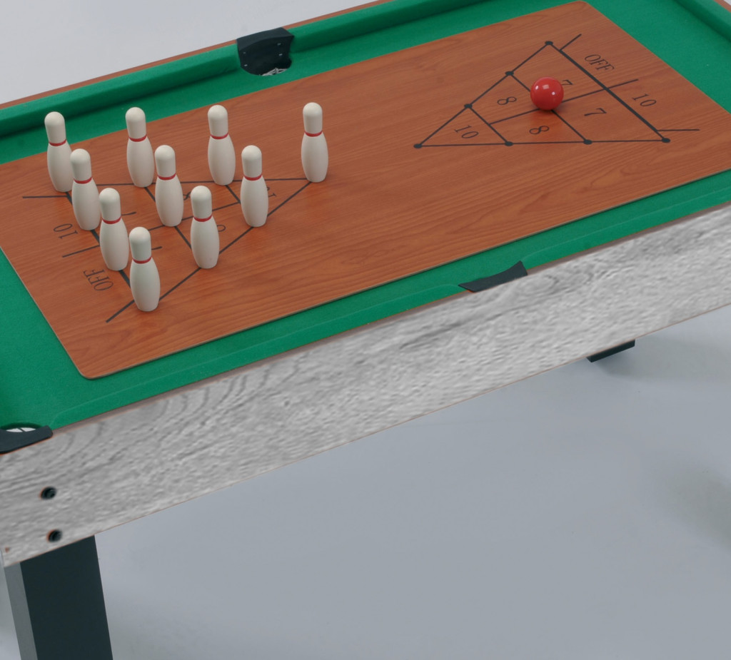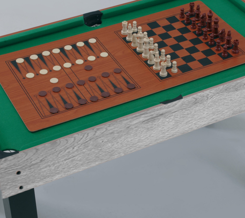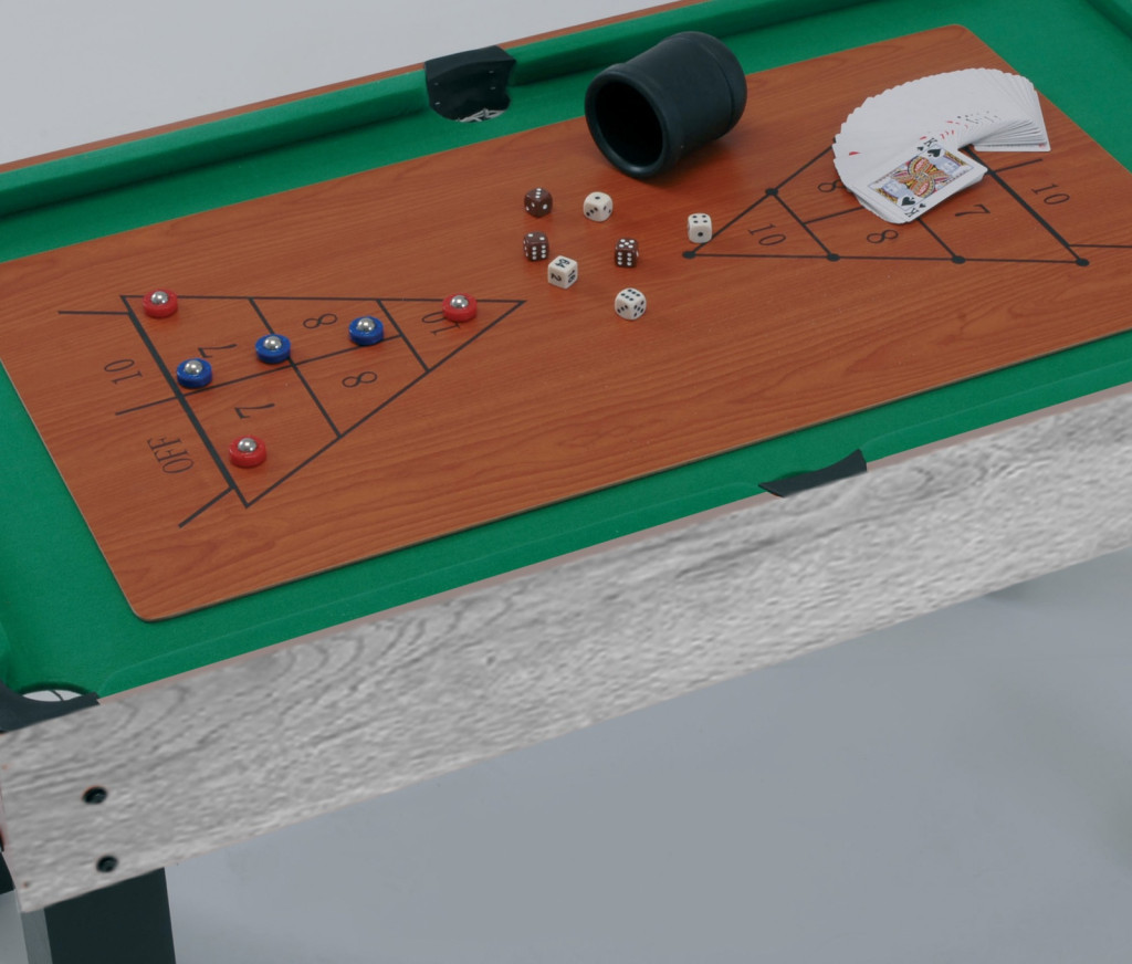 Sokoldalú multifunkcionális játékasztal, amely nem kevesebb, mint 12 asztali labdajátékra alkalmas: asztalifoci, biliárd, asztalitenisz, asztali hoki, bowling, backgammon, black jack, sakk, dámajáték, kockajáték, kártyajáték.
