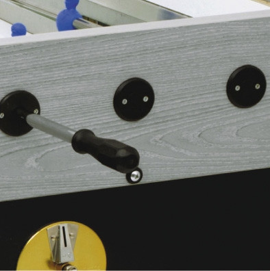 A golyóscsapágyas tokban gördülő rudazatok elősegítik a gyorsabb játékot a csukló megterhelése nélkül. Az asztal biztonsági üveg fedlappal fedett, ez szigeteli a zajokat, a játéktér tisztán tartható, véd a labdák eltűnése ellen. Ajánlott azon helyekre ahol nincs állandó jellegű ellenőrzés.